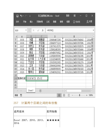 257 计算两个日期之间的年份数 适用版本 实用指数 Excel 2007、2010、2013、 ★★★★★ 2016