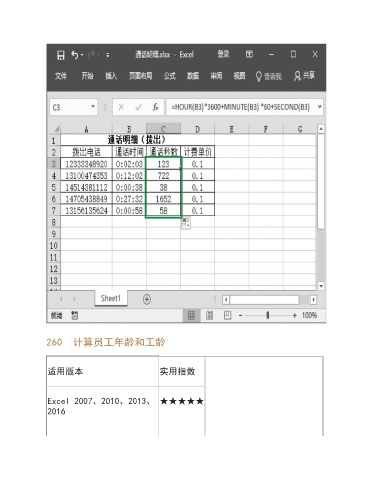 260 计算员工年龄和工龄 适用版本 实用指数 Excel 2007、2010、2013、 ★★★★★ 2016
