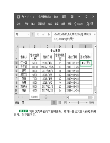利用填充功能向下复制函数,即可计算出其他人的还款倒 计时,如下图所示。