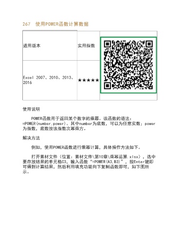打开素材文件(位置:素材文件\第10章\乘幂运算.xlsx),选中
