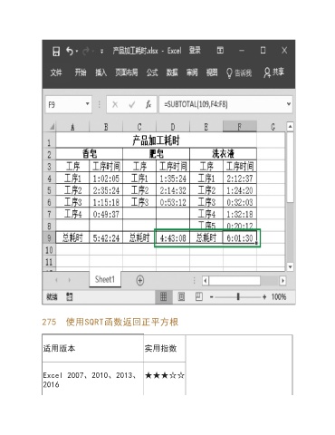 275 使用SQRT函数返回正平方根 适用版本 实用指数 Excel 2007、2010、2013、 ★★★☆☆ 2016
