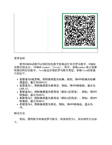 函数的语法为:=ROMAN(number,[form]),其中,参数number表示需要