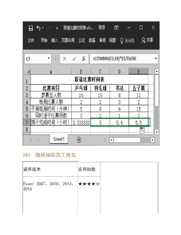 282 随机抽取员工姓名 适用版本 实用指数 Excel 2007、2010、2013、 ★★★★☆ 2016