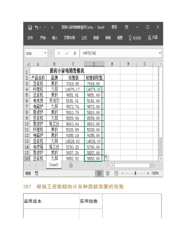 287 根据工资数额统计各种面额需要的张数 适用版本 实用指数