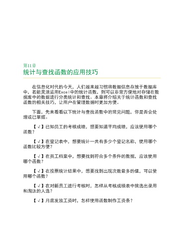 据库中的数据进行分类统计和查找。本章将介绍关于统计函数和查找