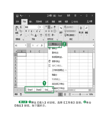 弹出【插入】对话框,选择【工作表】选项; 单击 【确定】按钮,如下图所示。