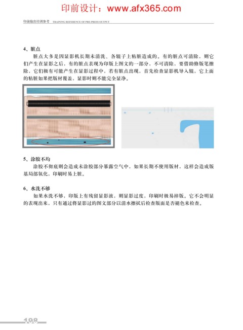 的表现出来,只有通过将显影过的图文部分以清水擦拭后检查版面是否褪色来检查。