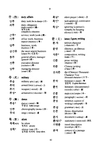 무 ( 務 ) duty; 교a f 묵넘* silent prayer [-think] - 念