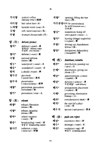 방수*       w a t e r p r o o f  卜water] -  水  배부*  distribution; p a ss ing  o u t