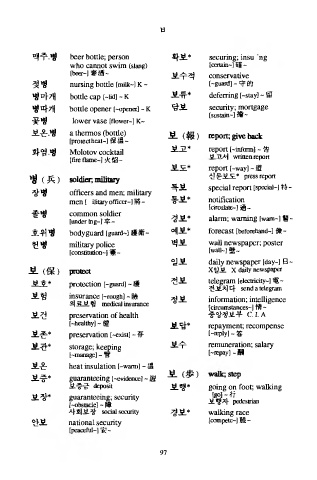 맥주.병      b e e r  bottle; p e r s o n    ^ 보*  securing; insu  n g