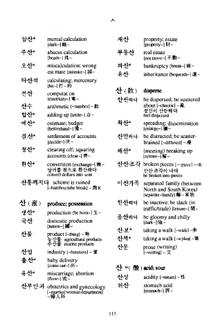 산 ( 産 ) p 께 uce; p ᄋ^^선o n 한산하다 be inactive; b e slack (in