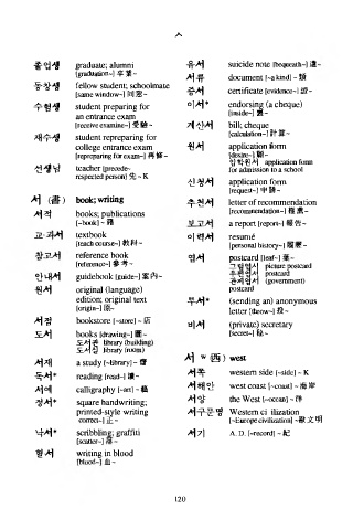 졸업생 graduate; alumni 유서 suicide note 맘 ueath-] 遺 ‘