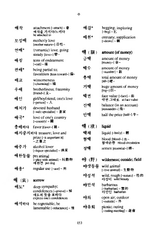 애착 attachment [ ~ ^교 ] - 着 애걸* begging; imploring