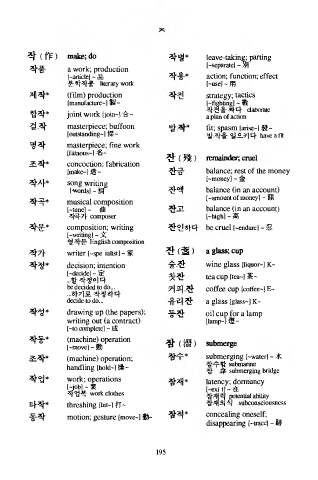 작 ( 作 ) 작별* le a v e -ta k in g p따ting