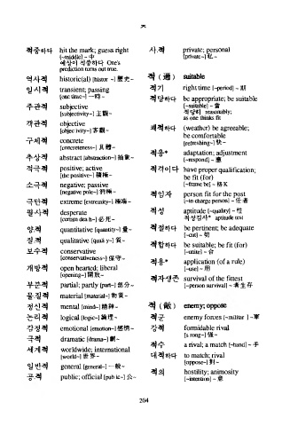 적중하다 h it th e m a rk ; g uess r ig h t 사.적 p riv a te ; 앓rs o n외
