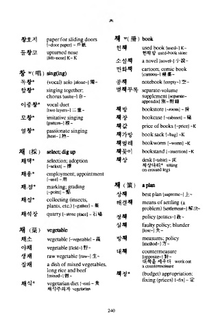 채 (採 ) 벼g u p 책꽂이 b o o k sto n d [-insertion] - K