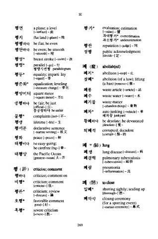 평면 a plane; a level 평 가 * evaluation; estimation