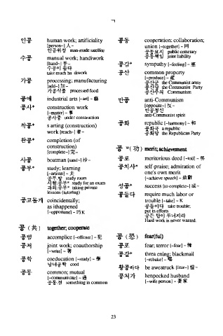 공부 * s tu d y ; le a rn in g 공치사 * s e lf-p ra is e ; a d m ira tio n o f