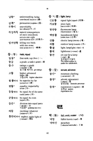 납득* understanding; bei ng 등 w ( 燈 ) 표咖 l a m p