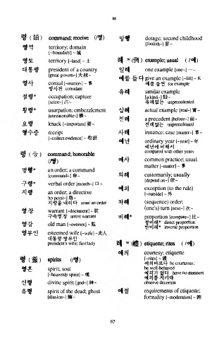 령 ( 領 ) ^ ^ m a n d ; ^ ^ w (/영) 망령 dotage; s e c o n d c h i l d h o o d