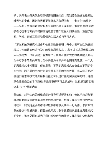 的思维模式非常重要。研究显示,不同的思维模式会衍生出不同的学