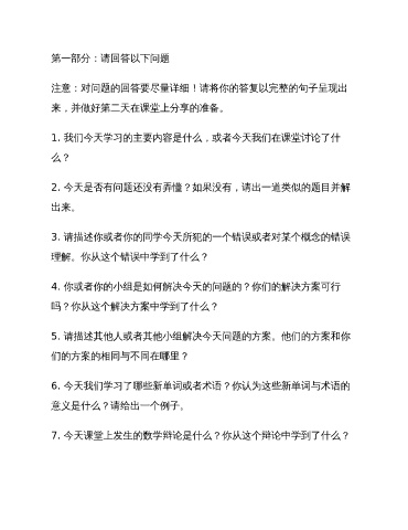 7. 今天课堂上发生的数学辩论是什么?你从这个辩论中学到了什么?