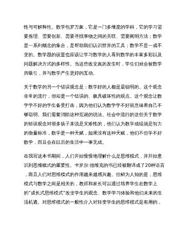 的“成长式思维模式”改变学生的观念、数学学习体验和他们未来的生