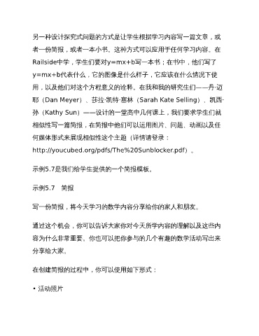 另一种设计探究式问题的方式是让学生根据学习内容写一篇文章,或