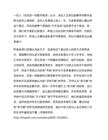 这个观点,而且风靡整个美国的“天才运动”也是基于这个观点。目