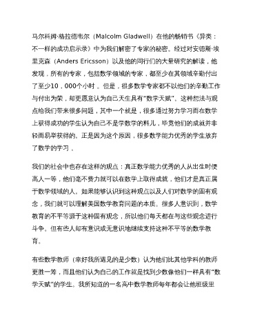 与付出为荣,却更愿意认为自己天生具有“数学天赋”。这种想法与观