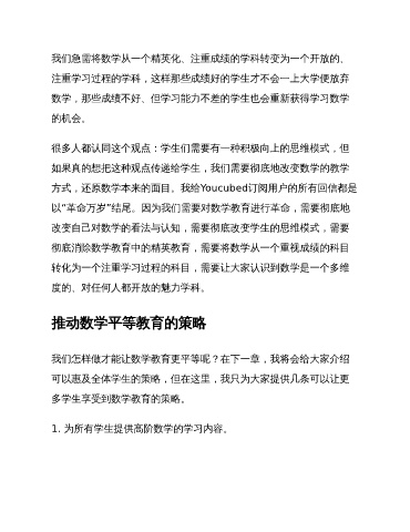 我们怎样做才能让数学教育更平等呢?在下一章,我将会给大家介绍