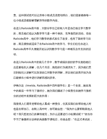 Railside高中不久便能开始认识到数学学习是一种相互合作支持的活
