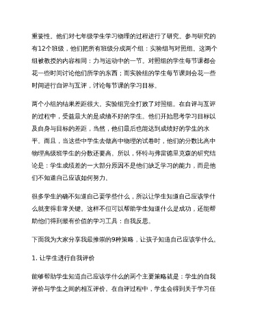 能够帮助学生知道自己应该学什么的两个主要策略就是:学生的自我