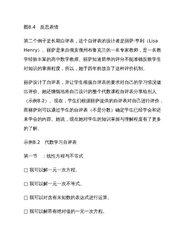 (示例8.2)。现在,学生们根据丽萨提供的自评表对自己进行评价,