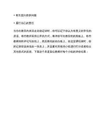 其他形式的反馈。下面这个表是某位教师对每个小组的评价结果: