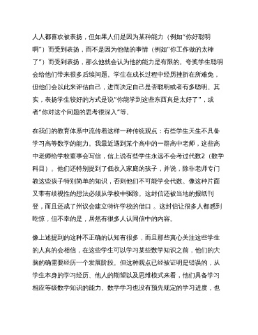 了”)而受到表扬,那么他就会认为他的能力是有限的。夸奖学生聪明