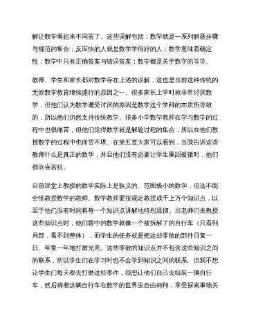 解让数学看起来不同罢了。这些误解包括:数学就是一系列解题步骤