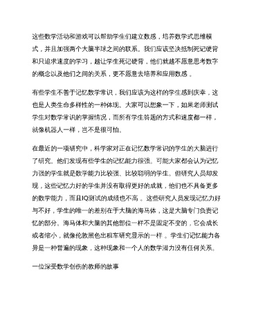 和只追求速度的学习,越让学生死记硬背,他们就越不愿意思考数字