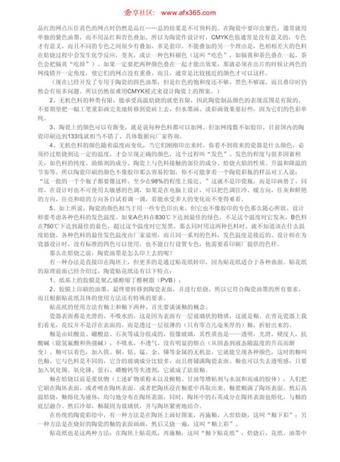 度焙烧。各种色料的最佳发色温度由厂家说明,而且同一系列的色料,发色温度是接近的。设计师在为