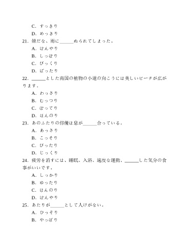 24.疲労を消すには、睡眠、入浴、適度な運動、______した気分の食