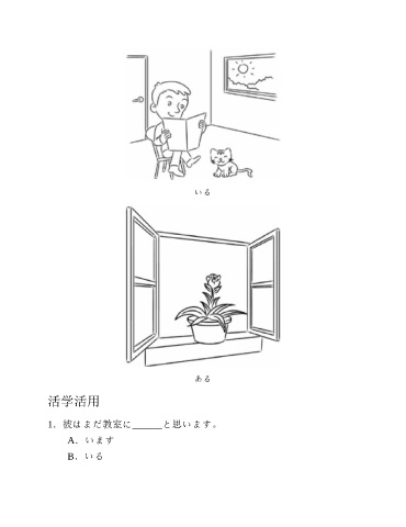いる ある 活学活用 1.彼はまだ教室に______と思います。 A.います B.いる