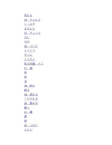 異なる 14 ちゃんと しっかり きちんと 15 ちょっと 少し やや 16 ついに とうとう やっと ようやく 练习问题 十三 17 通 冊 部 卷 18 掴む 握る 19 疲れる くたびれる 20 勤める 働く 21 綱 縄 紐 22 っぽい らしい