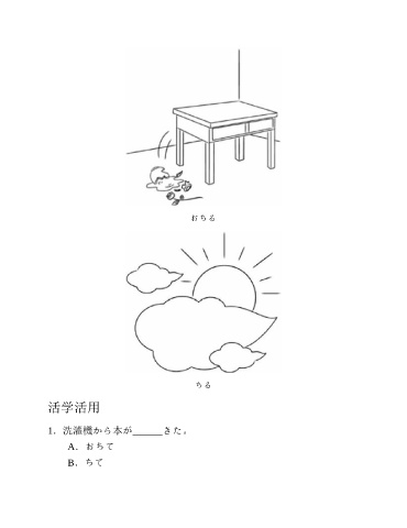 おちる ちる 活学活用 1.洗濯機から本が______きた。 A.おちて B.ちて