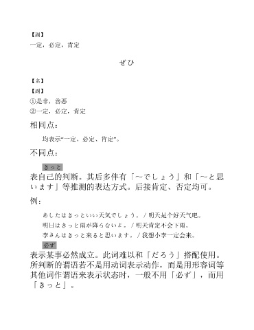 明日はきっと雨が降らないよ。/明天肯定不会下雨。
