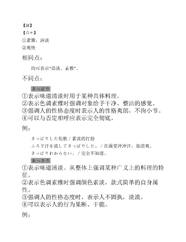 ①表示味道清淡。从整体上强调某种广义上的料理的特
