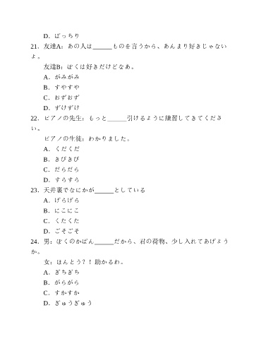 21.友達A:あの人は______ものを言うから、あんまり好きじゃない