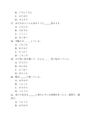 17.あの人はビールを水のように______飲みます。
