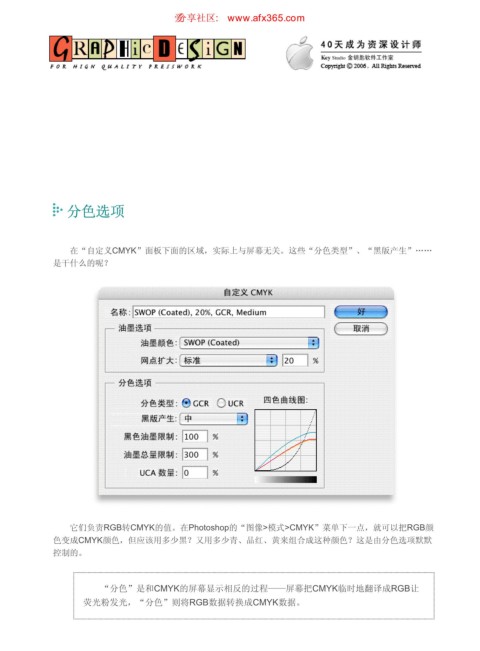色变成CMYK颜色,但应该用多少黑?又用多少青、品红、黄来组合成这种颜色?这是由分色选项默默