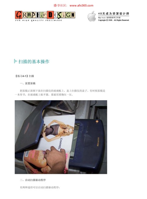 扫描的基本操作 ιٳཚഠ XXX BGY DPN 页码,1/11 扫描的基本操作 【练习4-1】扫描 一、放置原稿 把原稿正面朝下放在扫描仪的玻璃板上,盖上扫描仪的盖子。有时候原稿是 一本厚书,在玻璃板上贴不紧,那就用重物压一压。 二、启动扫描驱动程序 有两种途径可以启动扫描驱动程序: https://www.antssoft.com/4-2.htm 2009-5-9