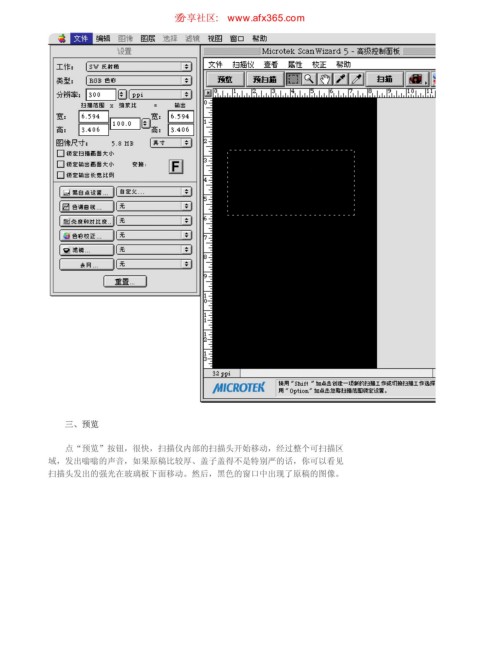 扫描的基本操作 ιٳཚഠ XXX BGY DPN 页码,3/11 三、预览 点“预览”按钮,很快,扫描仪内部的扫描头开始移动,经过整个可扫描区 域,发出嗡嗡的声音,如果原稿比较厚、盖子盖得不是特别严的话,你可以看见 扫描头发出的强光在玻璃板下面移动。然后,黑色的窗口中出现了原稿的图像。 https://www.antssoft.com/4-2.htm 2009-5-9
